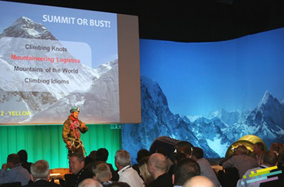 Cet insolite événement en salle convient tout à fait à des conférences thématiques telles que En route vers le sommet, Devenir le Numéro 1, ou Atteindre nos objectifs. La métaphore de l’ascension de l’Everest demande un vrai travail d’équipe pour pouvoir se surpasser dans une atmosphère de compétition comparable à beaucoup d’organisations.
